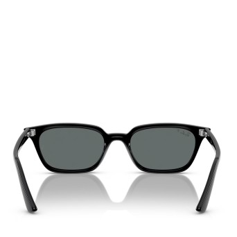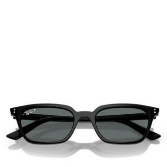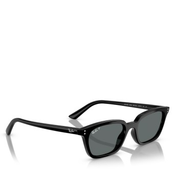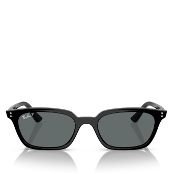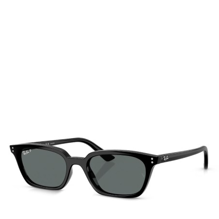 Ray-Ban Zaya Bio-Based sunglasses are a modern and stylish choice. The pillow-shaped black frames, paired with dark grey polarized lenses, offer both style and functionality.