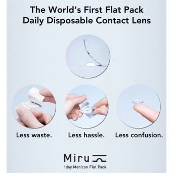 Οι φακοί επαφής Miru 1day Menicon Flat Pack διατίθενται από +4,00 έως -10,00.