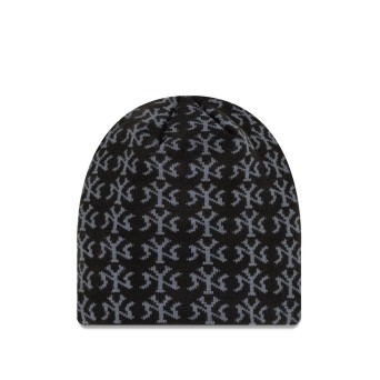 New York Yankees Jacquard Black Skull Knit Beanie Hat