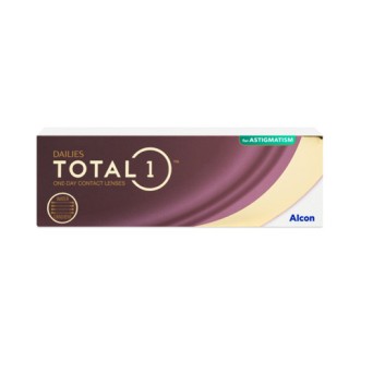 Dailies Total1 For Astigmatism are daily contact lenses offering superior comfort thanks to the Water Gradient technology that maintains moisture at the lens edges up to 100%. With Dailies Total1, your eyes breathe better and you feel as if you are not wearing contact lenses at all. With only 33% water in their core, they allow more oxygen to pass through compared to other daily lenses. Total1 For Astigmatism lenses are 6 times more oxygen permeable (High oxygen transmissible lenses, Dk/t=156).