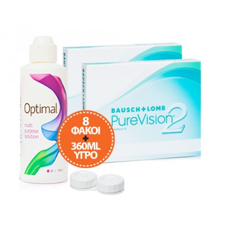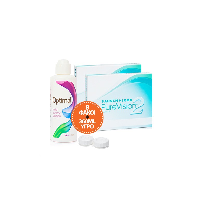 Economy Package, 2 boxes of PureVision2 with 3 lenses per box plus 2 additional lenses. Total 8 lenses along with Optimal 360ml Solution !!