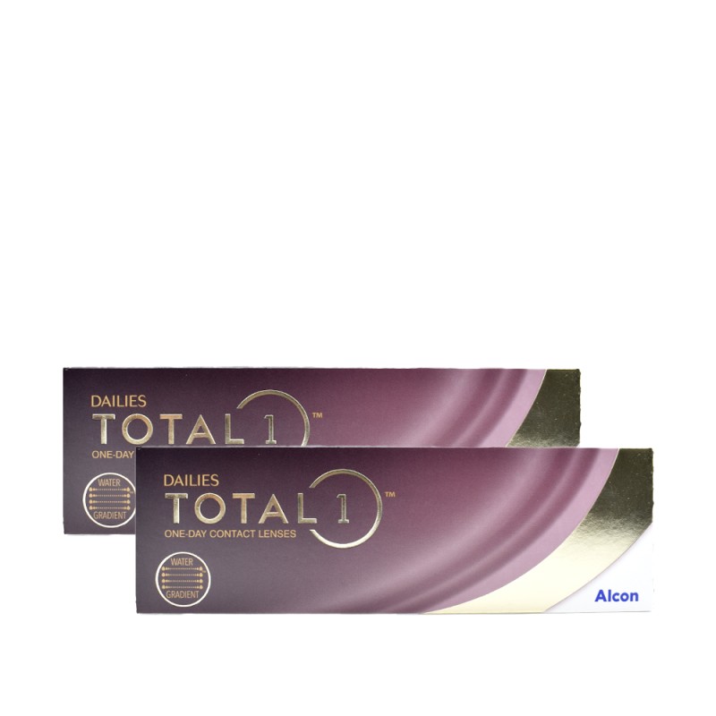 The Dailies Total1 are daily lenses with top comfort thanks to the Water Gradient technology that maintains up to 100% moisture at the lens edges. Using Dailies Total1, your eyes breathe better and you feel like you're not wearing contact lenses. With only 33% water in their core, they allow more oxygen to pass through compared to other daily lenses. Total1 are 6 times more breathable. (High oxygen transmissible lenses, Dk/t=156).