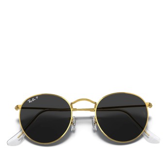 The Ray-Ban ® Round Metal sunglasses are totally retro. This look has been worn by legendary musicians and inspired by the 1960s counter-culture when this style first originated.The Ray-Ban unisex metal, iconic Sunglasses are known for their defined round crystal lenses and distinct shape. A curved brow bar, adjustable nose pads, and thin metal temples with plastic end tips rest comfortably behind the ears. Available with Legend Gold lens logo, straight from the archive.