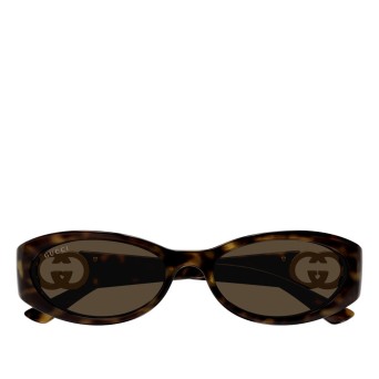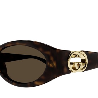 Vintage women's sunglasses GUCCI GG1660S-002, almond-shaped, with an acetate frame in brown/tortoise color and a GG logo on the temple.